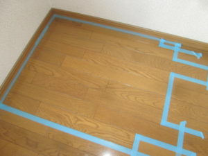 ワックスが塗ってある床の場合、最後にこのようにマスキングテープで